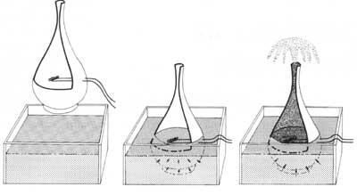 Para conocer la propagación del calor a través del helio superfluido se ideó el siguiente experimento: si en un baño de helio superfluido se introduce un recipiente con poros y cuello apretado, el helio superfluido penetra por los poros, dando por finalizado el proceso de penetración cuando se encuentran a la misma altura exterior e interior. Si posteriormente calentáramos el interior del recipiente con una resistencia eléctrica, el superfluido que lo rodea entraría a través de la pared para enfriar el interior y mantener el equilibrio. Debido a la cantidad de helio que entra en el envase, la gran chorreada de helio sale del cuello del envase para eliminar la diferencia de masa.
