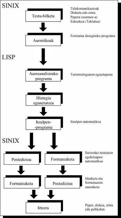 Behin formatua eta testua banandu ondoren, testua esaldi laburretan zatikatzen da eta LISP makinara igortzen, itzultzeko.
