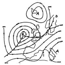 Ondoko irudia ikus eta isobaren numerazioan fija zaitezte. Isobarak biribilak dira; ia zirkularrak: 1004, 1008, 1012, 1016,..., zenbakiak dituzte barrutik kanpora.