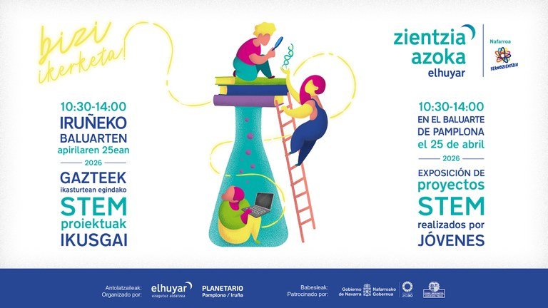 Elhuyarrek eta Iruñeko Planetarioak / NICDOk antolatu dute azoka, eta helburu nagusia kultura zientifikoa eta teknologikoa Nafarroako gizartera hurbiltzea da, etorkizunerako irtenbideak imajinatzen dituzten gazteen talentua aitortuz.