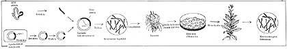 Plasmidoa ADN-T-aren barruko puntu batean ebaki eta hutsune bat uzten dugu. Hori gene arrotzak beteko du. Gero ADN-T errepikatzen da zelula tumoralen zatiketa gertatzen den unean, eta ehun-kultibo batean dauzkagun zelula tumoralek ADN-T eramango dute. Zenbait kasutan landare osoa birsortuko da, kultibatutako zelula tumoralak abiapuntu izanik. Prozesu honen ondorioz ADN-T-ek birsorturiko landarearen kromosometan irauten du. Are gehiago, ADN-T barruan dagoen gene berria, hurrengo landare-balaunaldira gene gainartzaile izanik pasatuko da.