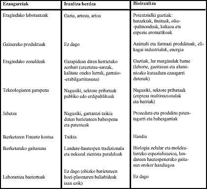 Hurrengo taulan bioteknologoen kopuruak konpara daitezke: