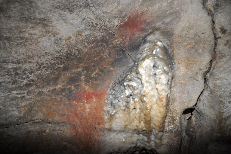 Ikertzaile-taldeko kide Joseba Rios Garaizar arkeologoen arabera, ez dute zalantzarik margoak Paleolitikokoak direla, baina, “zoritxarrez”, ez dute aukerarik kronologia zehazteko, ezta haien esanahia ezagutzeko ere. Kobazuloaren barrunbean eta sarreran daude margoak: barrunbean dauden arrastoak zarakar estalagmitiko batez erdi estalita daude, baina animalia-itxura dutela dirudite; sarrerakoa, berriz, orban zirkular bat da, kolore gorrikoa.