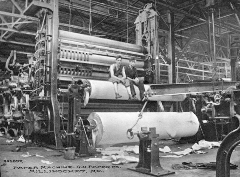 Energia hidraulikoaren eta baliabide naturalen erabilera eta kontrola areagotu ahala, eta Europa atlantikoko herrialdeetan gertatutako aurrerapen zientifiko eta aldaketa teknologikoekin bat eginik, paper-makinak hedatu ziren paper-lantegietan. Hala, ordura arteko ekoizpen-modu tradizionalak ordezkatu ziren, eta fabrika-sistemak ezarri. XIX. mendeko industrializazio-prozesu horien ondorioz eta paper-eskariaren gorakada kontuan hartuta, paperaren ekoizpenak hazkunde nabarmena izan du XIX. mendearen amaieratik gaur egun arte, eta papergintza mundu guztira hedatu du.