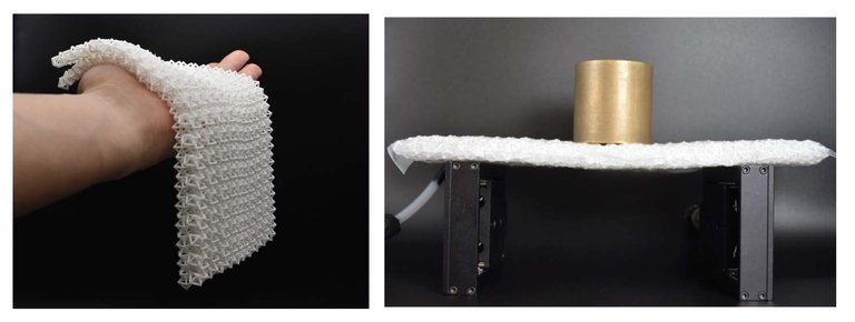 A través de la presión han desarrollado un tejido que pasa de ser flexible a ser duro y rígido, y viceversa. Para la obtención de este tejido se han sustituido las fibras por elementos poliméricos compuestos por impresoras 3D interconectadas. En su estado original, la tela es flexible, al igual que la tela convencional. Cuando se comprime, sin embargo, los elementos opileméricos se unen y atan y la tela se vuelve 25 veces más rígida. Con esta estructura puede soportar cargas superiores a 30 veces su peso.