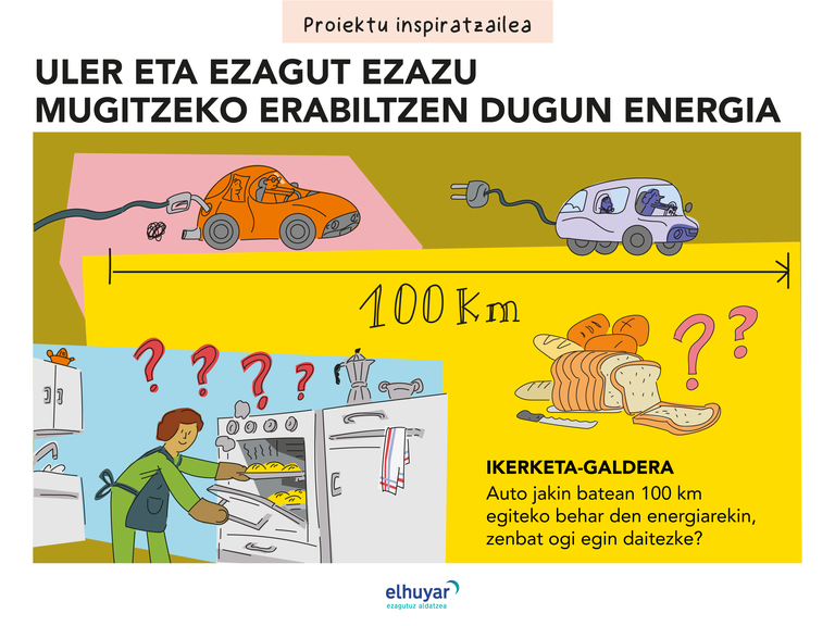 - Calcular a cantidade de pan que se pode facer no forno de casa coa enerxía que se consome para percorrer 100 km con cada tipo de transporte e comparar os resultados.