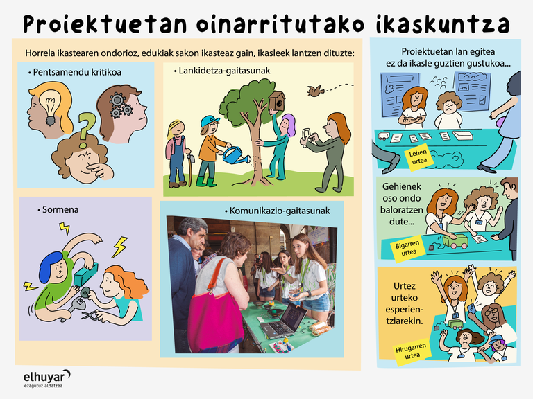 Proiektuetan lan egitearen ondorioz, ikasleek, edukiak sakon ikasteaz gain, honako gaitasun hauek garatzen dituzte: pentsamendu kritikoa, lankidetza-gaitasunak, sormena eta komunikazio-gaitasunak.