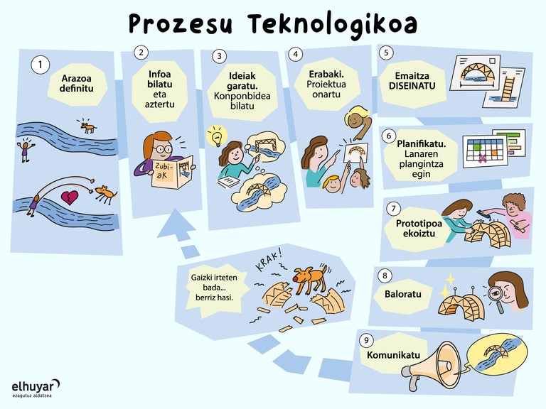 Hezkuntza munduko prozesu teknologikoan urrats hauei jarraitzen zaie nagusiki: