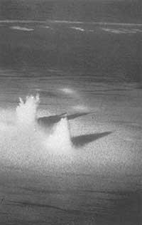 - Cuando el agujero ha sido bien cerrado y solidificado se produce la explosión. Los aparatos de medida y las cámaras tienen un milésimo segundo para enviar su información, ya que rápidamente quedan destruidos por millones de grados de calor y millones de atmósferas. En décimo de segundo el basalto circundante se evapora formando un agujero esférico. Una explosión de 10 K deja una esfera de 21 m de radio.