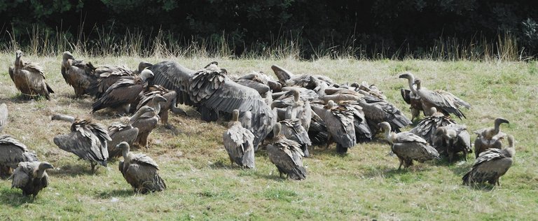 Eta janari-beharra? Hegazti bakoitzak egunero 1-1,5 kg behar dituenez (urtaroaren arabera) eta EAEn eta inguruetan 2.000 hegazti inguru dabiltzanez, urtean 800-1.200 t behar dira. Badira animalia hilei probetxua ateratzen dieten beste animali espezie batzuk ere: azeria, basurdea... Animalia horientzat, ordea, noizbehinkako janari izaten dira eta ez dute eragin handirik kalkulatutako kantitateetan.