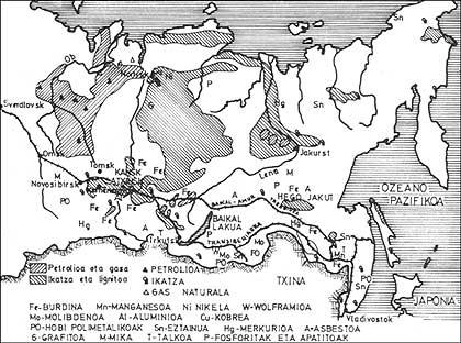 Siberia Sobietar Batasuneko erregai-biltegia da. Dituen energi erreserbatatik ia hiru laurden bertan daude eta seguruenik ere munduko ikatz-erreserben erdia du. Siberiako oihanak munduko zurgintzarako material guztitik bostena du, eta bertako 50.000 inguru ibaitako bik (Yenisei eta Lena-k), Sobietar Batasun guztian baino energi erreserba gehiago dute.