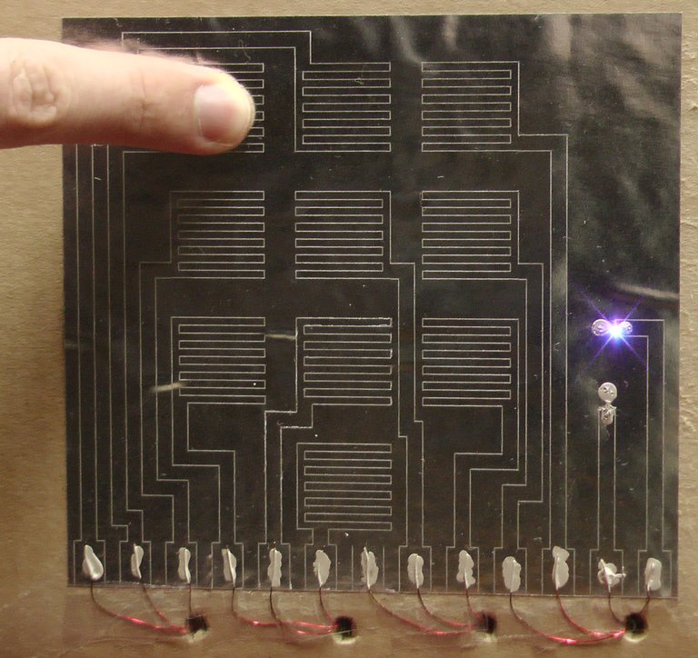 What was done at Harvard University is a numeric keypad. A thin sheet of aluminum has been coated with a layer of paper that has “engraved” the circuit using a laser. It has cost them a total of 50 dollars, but they say they have the possibility to reduce this cost, and in this way they can make diagnostic chips of a single use cheap, for example, for use in impoverished countries.