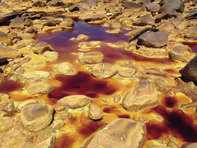 Huelvako lur idorretan behera, milaka urtetan meatzaritzak eraldatutako eremuak zeharkatuz, bare jaisten dira Tinto ibaiaren ur gorriak. Gorriaren ondoan, metaketa hori eta berdatsak ageri dira ibai-bazterrean, harrien bueltan eta abarretan. “Oso leku berezia da”, dio Ricardo Amils Mikrobiologian katedradunak. “Burdinaren eraginez kolore gorri hori duen ia 100 kilometroko ibai bat ez da ohikoa. Luzera horretako bakarra da munduan”.