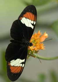 La mariposa Heliconius heurippa tiene en sus alas marcas de dos colores rojas y blanquecinas, y es el resultado de la hibridación entre otras dos especies: Heliconius cydno, huella blanca y Heliconius melpomene, huella roja. (Foto: M. Linares )