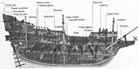 Branka eta popako gazteluen artean, arraunen gainean pasabideak zeuden ezker-eskuin, eta han ibiltzen ziren atzera eta aurrera untziko marinelak nahiz ofizialak.