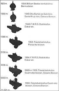 Aurrez ordea, 1953. urtean, Auguste Piccard jauna bere seme Jacques-en laguntzaz 3700 metroraino jaitsia zen Mediterranioko Tirraniar itsasoan. " Trieste " izeneko batiskafoaz baliatu ziren horretarako.