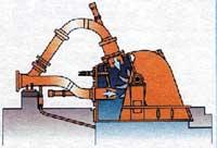 Está claro que el agua es imprescindible para la generación de energía hidroeléctrica, pero también son imprescindibles, además de los generadores de electricidad, las turbinas que les afectan. Las turbinas se pueden clasificar en dos grupos: las turbinas de acción, que trabajan por la velocidad de vertido del agua, y las turbinas de reacción, por la presión del agua y por la velocidad. En las pequeñas centrales de nuestro país se utilizan las del primer grupo, que suelen ser de tres tipos. Turbinas Pelton especialmente adecuadas para saltos grandes y caudales relativamente pequeños. Las turbinas Kaplan son aptas para pequeños saltos (menores de 30 m) y grandes caudales. Finalmente, las turbinas Francis que se adaptan a situaciones intermedias en la anterior se pueden utilizar en un amplio rango de caudal y salto de agua. No obstante, para conocer la potencia a instalar con una u otra turbina y la cantidad de energía que se producirá a lo largo del año, es necesario conocer el caudal del río o arroyo en este punto. Esto se hace teniendo en cuenta diferentes parámetros (precipitación, tipo de suelo, etc.), pero siempre con una larga serie de años para que entren los años secos, normales y lluviosos. De estos datos se calcula el caudal y caudal clasificado (caudal de agua en días anuales) del cauce en cada día. A este último se le restará el caudal ecológico, es decir, el caudal mínimo que necesita el cauce durante todo el año y se calculan Q80 y Q100, es decir, el caudal existente entre 80 y 100 días al año. Con ellas se puede conocer el número de días que trabajaría cada tipo de turbina y, por tanto, elegir el más adecuado.