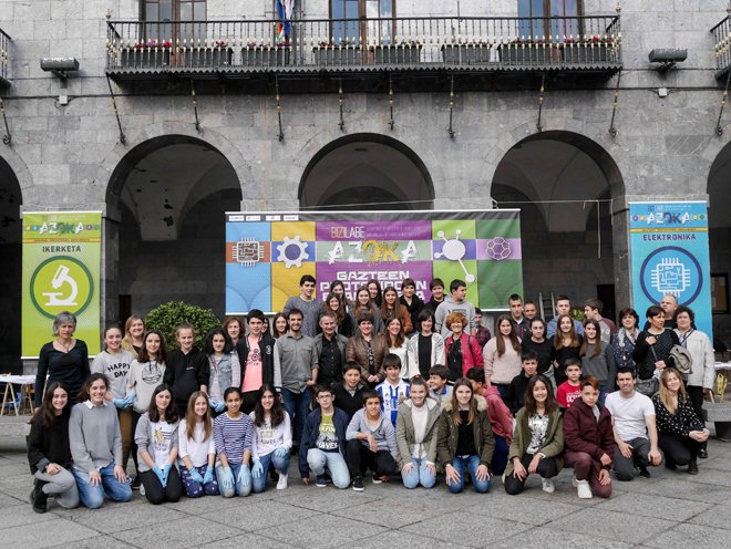 Más de un centenar de jóvenes de Floreaga, Ikasberri, Iraurgi, Urola y Xabier Munibe han presentado en la plaza central de Azkoitia los avanzados prototipos científico-tecnológicos desarrollados en los talleres ofertados. Estos prototipos han sido creados gracias al trabajo en grupo realizado en cinco talleres, con el objetivo de mejorar la capacitación y formación de los alumnos de Educación Secundaria Obligatoria de la comarca.