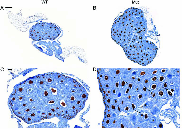 Al estudiar a las hembras sin proteínas P27, se observó que tenían más obocitos y folículos y que, sin embargo, eran estériles. En particular, “nos dimos cuenta de que, por su morfología llamativa, hasta ahora nadie había mencionado en ningún artículo, los folículos multiobocitarios eran abundantes en estos ratones en la etapa perinatal. Esos folículos son especiales, porque los folículos normalmente tienen un ovocito”, explica Germen. Aunque parezca paradójico, la presencia de folículos multiobocitarios coincide con la esterilidad, ya que a los pocos días del nacimiento de la cría se deterioran. “Tenemos que analizar más mecanismos, pero es muy probable que al crear estos folículos y al aumentar la cantidad de ovocitos aparezca una cierta selección negativa que provoque su degeneración”, ha añadido Jairo Pérez, investigador que está finalizando su tesis doctoral en el grupo de De la Refrigeración.