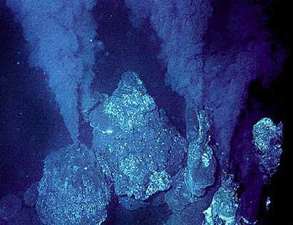 Los científicos han descubierto un ecosistema muy especial alrededor de las chimeneas. De este agua caliente hay microorganismos que captan energía y la transforman, a la vez que estos microorganismos son la base de toda una cadena alimenticia: lombrices, moluscos, cangrejos y otros muchos seres vivos alrededor de las chimeneas. Todos ellos viven a miles de metros de profundidad, en toda la oscuridad y soportando altas presiones y temperaturas.