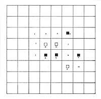 - Lehenengo araua bete eta gero, gainerako fitxak ondoko erara kokatuko dira: fitxa bakoitza (beltza esaterako) aurkako jokalariaren fitxa (zuri) baten ondoan ezarri behar da; errenkada edo zutabe berberean edo diagonalki 1, 2, 3, 4, 5, 6, 7 edo 8 laukitxoan. Horretaz gain, fitxa (beltza) kolore bereko beste fitxa baten lerro (errenkada, zutabe, diagnoal) berberean kokatu behar da, beraien artean eta hutsunerik gabe aurkakoaren fitxa (zuri) bat edo gehiago, geratzen delarik. 10 laukitxoan adibidez ezin da jarri beltza, baina 11n bai. Adibidez, A, C, 11-k errenkada osatzen du eta A, D, 6-k diagonala.