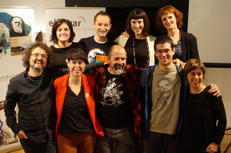 The speakers have been: Ibon Cancio Uriarte, biologist, Miren Karmele Gómez Garmendia, communicator of Pamplona, Uxoa Iñurrieta Urmeneta, computer linguist, Edu Lartzanguren Urdangarin, Ainhoa Latatu Nuñez, Josu Lezameta Larrabeiti, basque journalist, lopez. As a guide, Alaitz Ochoa de Eribe Aguirre, a member of Elhuyar.