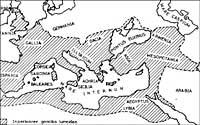 Erromatarrak K.a. 168. urtean Mazedoniaren konkista zela eta, Greziako kulturarekin harreman hertsian hasi ziren. Hasiera batean kontaktu hauek ez ziren batere errazak. Erromatarrek Erroman Greziako kultura eta fisolofia sartzean arriskua baino ez zuten ikusi, zeren beren bitartez erromatarren benetako nortasuna eta berezitasunak zalantzan edo pikotan jar bait zitezkeen.