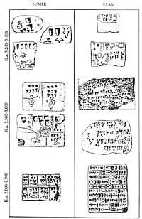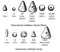 K.a. 3.500. urtean, gutxi gorabehera, Sumer eta Elam oso herri aurreratuak ziren; salmenta, erosketa, inbentario, banaketa eta abarren emaitzak gordetzeko gero eta behar handiagoa sentitzen zuten. Tratuak sinatzeko buztinazko esfera batean behar ziren fitxak sartzen zituzten. Itxitakoan tratalariek beraien zigilua grabatzen zuten esferan. Guzti hau kontalari baten aurrean egiten zen, esfera azken honek gordetzen zuelarik.