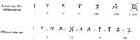 Etruriarrek erromatarrek baino lehenago erabili zituzten printzipio batukor eta kenkorra. Lehenengo lau zenbakiak adierazteko, behar adina marra egiten da,