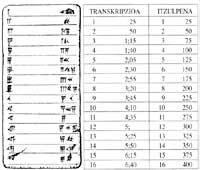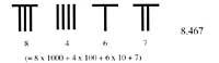 Marra horizontalari 5 balioa ematen zitzaion. Hortik aurrera zenbakiak posizio-printzipioaren arabera adierazten ziren: