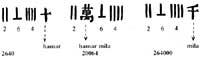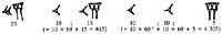 1etik 59rainoko zenbakiak printzipio batukorraren bidez eta hortik aurrera posizio-printzipioz. Sistema hau gurearen antzekoa bazen ere, unitate-ordena bakoitzean printzipio batukorra erabiltzen zuen eta 59rainoko zenbakiak adierazteko ez zuten ikur ezberdinik erabiltzen. Honek zalantza asko sortu zuen. Baina zailtasun honek beste sakonago bat ezkutatzen