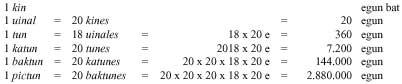 Hasieran zifrekin batera, zegozkien ordenen ikurrak idazten zituzten. Geroago, ikur hauek ez zirela beharrezkoak ohartu ziren eta kendu egin zituzten. Hirugarren solairuko 360 ordenaren arrazoia astronomian bilatu behar da. Egutegi maietan lehenengo solairuak egunak adierazten ditu, bigarrenak hilabeteak (20 egunekoak), hirugarrenak urteak (360 egunekoak), ...
