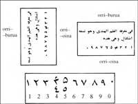 Itxuraz aldatzeko arrazoi bat idazkeran aurkitzen da; zutabeka idazten bait zuten, ezkerretik eskuinera. Irakurtzeko 90°ko bira, erloju-orratzen norantzan, ematen zioten. Nolanahi ere, probintzia arabiarretatik zabaldu ziren zifrak izan ziren, beraiek zifra “hindi” deitzen zietelarik.