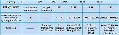 Taula honetan honakoa ikusten da: konplexutasun altueneko zirkuituak gaur egun VLSI (Very Large Scale of Integration) mailakoak edo oso integrazio maila handiko zirkuituak direla. Berorietan osagai-kopurua oso handia izateaz gain, osagaien tamaina gero eta txikiagoa da, osagaiek betetako silizio-azalera oso garrantzitsua izanik. Esate baterako, transistoreen neurriak mikratan ematen dira, mikra bat (1µm) milimetro bat baino mila aldiz txikiagoa delarik. Neurri hauetatik datorkie izena mikroelektronikari, mikroprozesadoreei eta abarri.