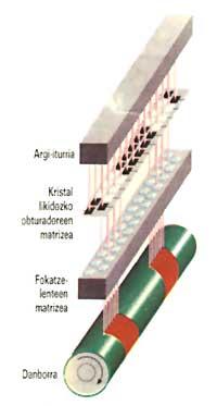 similar to LED technology. Generate complete lines every time. Each of the 2400 liquid crystal shutters is closed or opened by controlling the light received by the photosensitive cylinder. Shutters are liquid crystal cell arrays. The molecules that contain liquid crystal cells are in the way of crossing the lights. If there is electric current, the crystal changes the position of the molecules preventing light from crossing the cell. - Photosensitive cylinder preparation (OPC) The