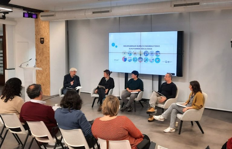 se ha presentado el "Decálogo de Elhuyar para la comunicación ambiental" ante profesionales y estudiantes del ámbito de la ciencia y la comunicación en el espacio Etorkizuna Eraikiz de la Diputación Foral de Gipuzkoa.Paralelamente a la exposición de los principales puntos que recoge el decálogo, se ha reflexionado en torno a la mesa redonda sobre la emergencia climática y las claves a tener en cuenta para su difusión.