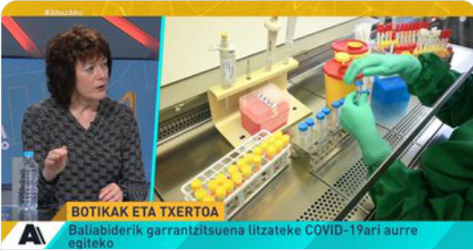 Miren Basaras Ibarzabal, microbiologiste de l'EHU, et Ana Galarraga Aiestaran, communicatrice d'Elhuyar, assistent à la session orale pour expliquer les clés de la crise du coronavirus. Des sujets tels que le personnel de santé, les patients, le comportement de la pandémie et le vaccin ont été abordés.