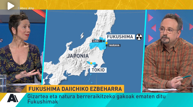 L'investigador Unai Pascual García d'Azilu acaba d'arribar de Fukushima. Ana Galarraga Aiestaran, d'Elhuyar, ha parlat en el programa ahoz aho d'ETB1 sobre les conseqüències de l'energia nuclear i dels residus radioactius d'aquesta planta.
