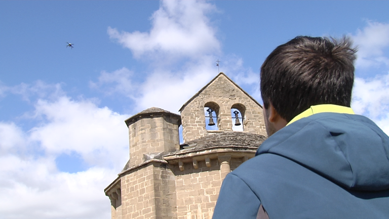 La empresa Technidrone se dedica a relaizar trabajos aéreos en secores como la industria, la geografía o los edificios históricos. Además de diseñar y fabricar drones personalizados, también los pilotan. Uno de los proyectos que tienen entre manos es la creación de un modelo 3D de la iglesia Santa María de Eunate.