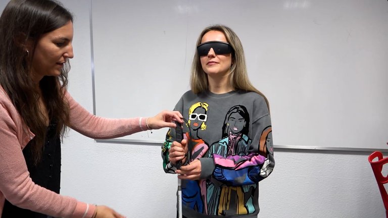 Alumnas del máster en diseño de productos y servicios estratégicos de Mondragon Unibertsitatea realizan un ejercicio de empatía. La idea es ponerse en la piel de personas con diversidad funcional; conocer las dificultades con las que se suelen encontrar para poder diseñar productos y servicios adecuados para ellas.