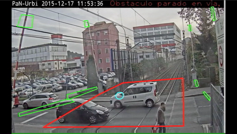 Le système Eye Crossing détecte ce type de situations et envoie différents types d'alertes en fonction de leur gravité. Par exemple, cette camionnette est au milieu de la voie ferrée. Les barrières sont ouvertes et le train est encore loin, mais le véhicule est immobilisé depuis plus de 10 secondes et pourrait être en panne. Une alerte a été reçue au poste de commandement, accompagnée d'un signal vidéo en direct. De cette façon, le responsable peut voir ce qui se passe et prendre les décisions nécessaires.