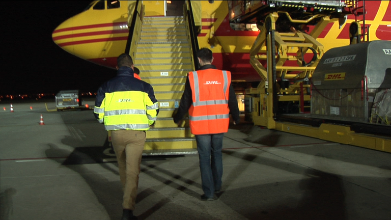 Hemos visitado las nuevas instalaciones que la empresa DHL ha abierto en el aeropuerto de Vitoria, para conocer las claves del transporte urgente. Desde que aterriza el primera avión a las 3.30 hasta que despega el último a las 7.00, se procesan los envíos de 12 vuelos, un total de 25.000 paquetes cada noche.
