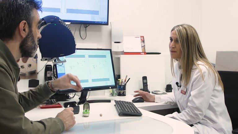 Par courtoisie, nous ne connaissons généralement que les conséquences, nous ne les entendons pas, et encore moins les caractéristiques et l'origine du phénomène lui-même. Xabier Altuna, oto-rhino-laryngologiste d’Osaquideria, nous explique les principales causes de la surdité et les traitements les plus courants de la maladie. La technologie peut vous aider à mieux entendre et à promouvoir l'empathie. Dans le centre GAES-Amplifon de Saint-Sébastien, l’audioprothésiste Olatz Mateos nous montre un système informatique. Grâce à ce système, les personnes qui l’entourent ont la possibilité de se mettre à la place de la personne sourde et de ressentir les problèmes auditifs à la première personne.