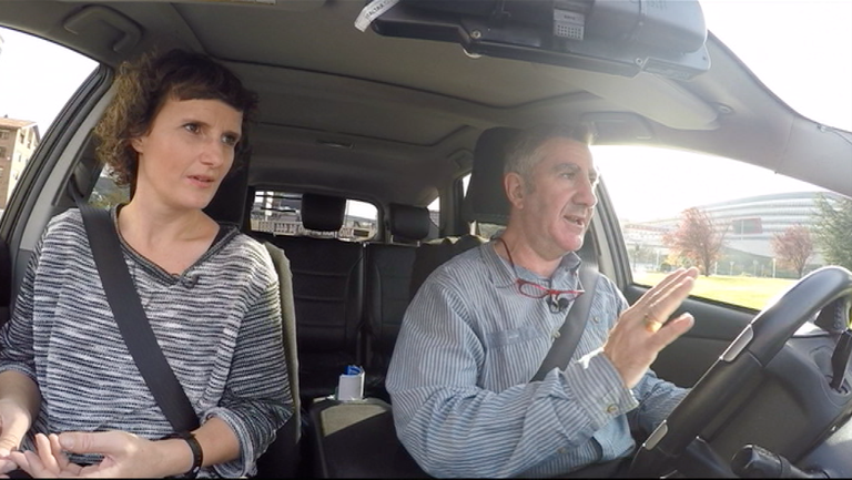 Iñaki Fernández conduit un taxi trifuel qui fonctionne avec un moteur électrique, de l'essence et du gaz de pétrole liquéfié.