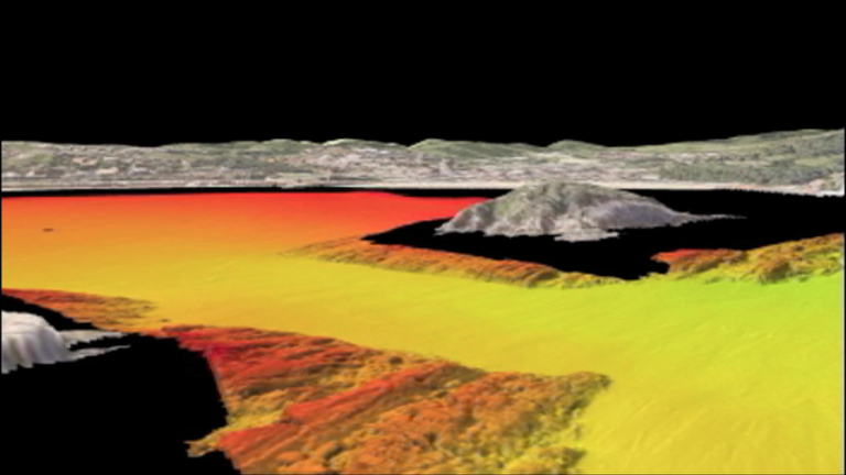 ADOLFO URIARTE; Geòleg, AZTI-Tecnalia: Això és una platja, com diuen els pescadors. Aquí es troba Orio, en la longitud 2.12, que és Zumaia, i aquí davant, a l'altura de Zarautz aproximadament, tenim els següents punts: són pockmark, petits volcans, o no tan petits, són forats de mig metre a 58 metres. Encara hem d'investigar-los. Sabem que flueix un fluid, algun líquid o gas, pot ser metà.