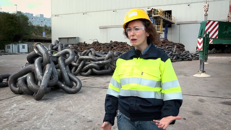 Visitamos la fábrica que Vicinay Marine tiene en Sestao para ver el espectacular proceso de producción de las cadenas que anclarán el aerogenerador flotante. Las más grandes que fabrican tienen 220mm de diámetro y pesan unos 850 kilos.