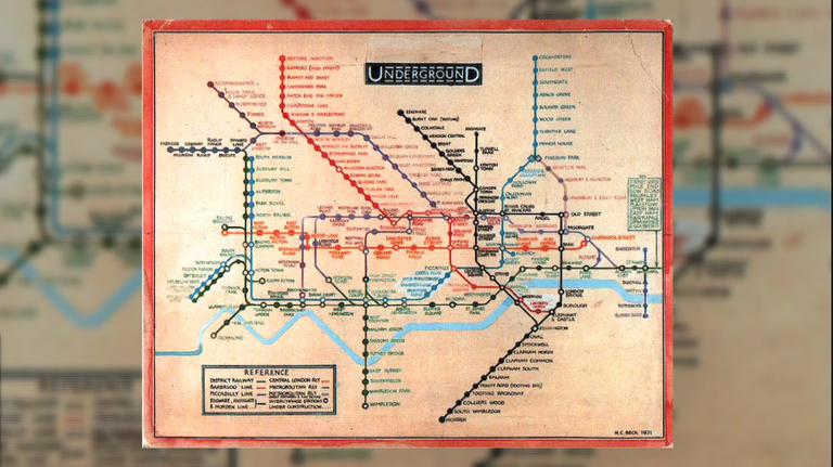 Le métro de Londres est le plus ancien du monde. Pour la première fois depuis 1908, il publie des cartes des gares et de la route des trains. Mais cette carte était géographique et ne se révélait guère utile au fur et à mesure que le métro se développait. vingt-cinq ans plus tard, il est passé d’une carte à un diagramme et a inventé le « type de carte » standard utilisé aujourd’hui par les métros du monde entier.