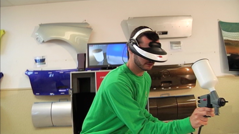 in addition to the 3D image, the system also reproduces sounds from a painting booth where the gun vibrates. Everything to get as close to reality as possible.
