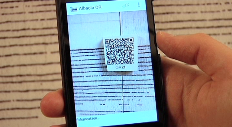 Les explications du musée Albaola peuvent être reçues dans n’importe quelle langue grâce à une application qui utilise des codes QR.