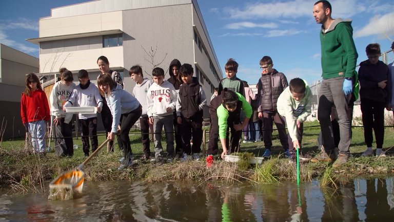 Bosques, praderas, estanques... los espacios exteriores pueden ser unos excelentes recursos educativos y el proyecto que el Berritzegune Nagusia del Departamento de Educación del Gobierno Vasco ha puesto en marcha quiere aprovecharlos. Visitamos el centro Errekabarri de Vitoria-Gasteiz para conocer qué y cómo aprenden los alumnos en el estanque que tienen en el patio. Colaboran también en este novedoso proyecto educativo Aranzadi, Neiker y la Universidad del País Vasco.
